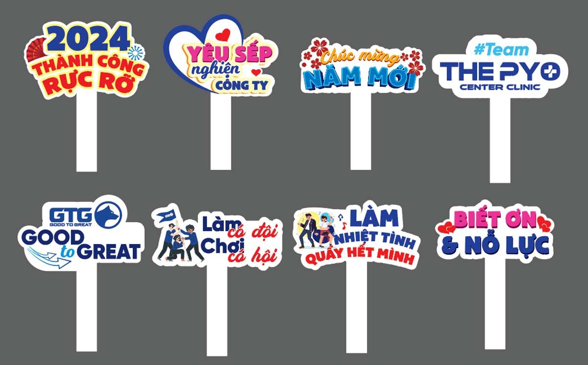File vector PDF gồm 9 mẫu hashtag cầm tay độc đáo, phù hợp sử dụng trong sự kiện công ty, chụp ảnh team building hoặc tiệc tất niên. Các mẫu thiết kế với câu slogan vui nhộn như “Yêu sếp nghiện công ty”, “Làm nhiệt tình quẩy hết mình”, “Biết ơn & nỗ lực” hay “2024 thành công rực rỡ” đều mang phong cách hiện đại, dễ thương, dễ dàng in ấn và sử dụng. Định dạng file vector giúp chỉnh sửa nội dung, màu sắc linh hoạt theo yêu cầu thương hiệu. Bộ hashtag là lựa chọn lý tưởng để tăng không khí sôi động và kết nối trong các hoạt động nội bộ doanh nghiệp.