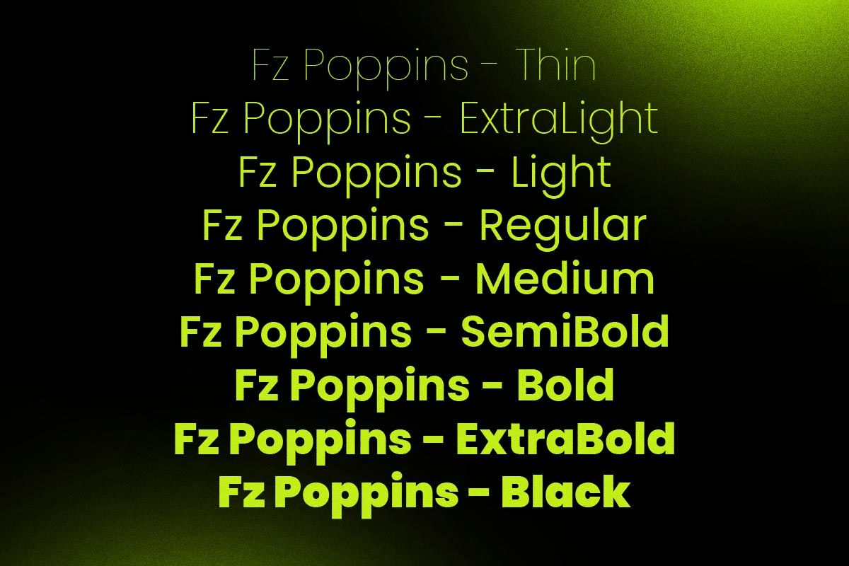 Nếu bạn đang tìm một font không chân, hiện đại và dễ ứng dụng, thì FZ Poppins là lựa chọn lý tưởng cho các thiết kế cần sự chuyên nghiệp, sạch sẽ và tối giản, đặc biệt trong lĩnh vực công nghệ, giáo dục và truyền thông số.