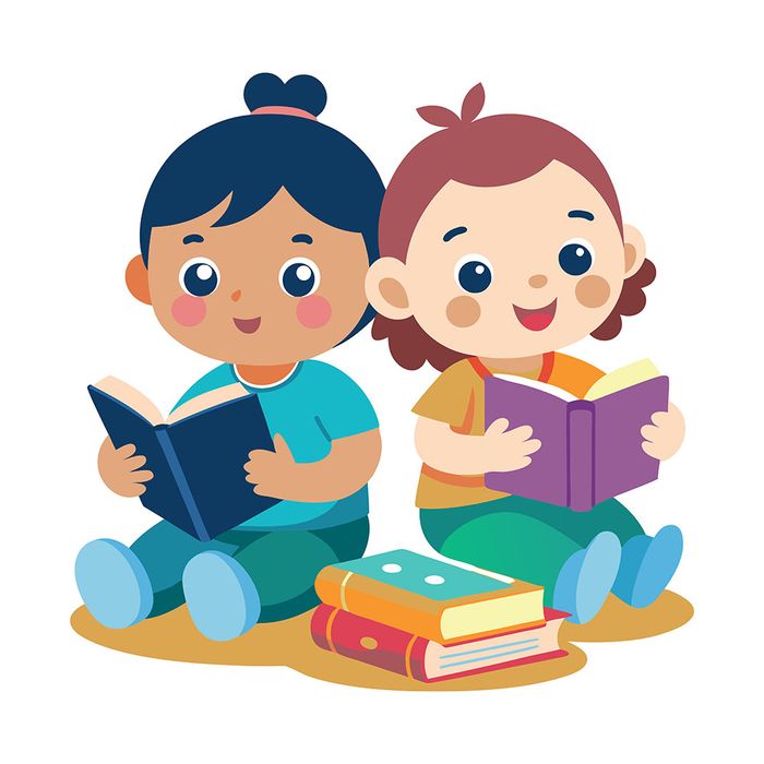 Hình ảnh hai bạn nhỏ ngồi đọc sách file vector mẫu JP365