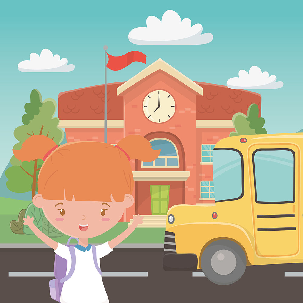 Hình ảnh bé gái đi học bằng xe trượt file vector mẫu DH113