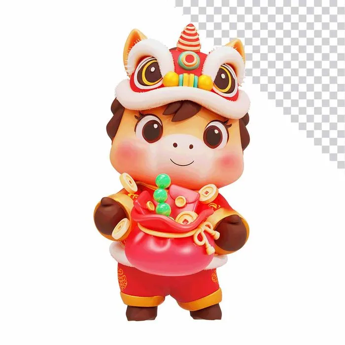 Mẫu thiết kế linh vật 3D chuyên nghiệp chú ngựa đang bê túi tiền đỏ đầy ắp vàng thỏi và bao lì xì, tượng trưng cho sự giàu sang và thịnh vượng. Hình ảnh đã được tách nền sẵn (PNG/PSD), giúp các designer dễ dàng ghép vào các mẫu thiết kế truyền thông, quảng cáo Tết. Sự kết hợp giữa tông màu đỏ may mắn và vàng tài lộc tạo nên điểm nhấn ấn tượng, mang lại không khí tết rộn ràng và ý nghĩa chiêu tài tiến bảo cho doanh nghiệp.
