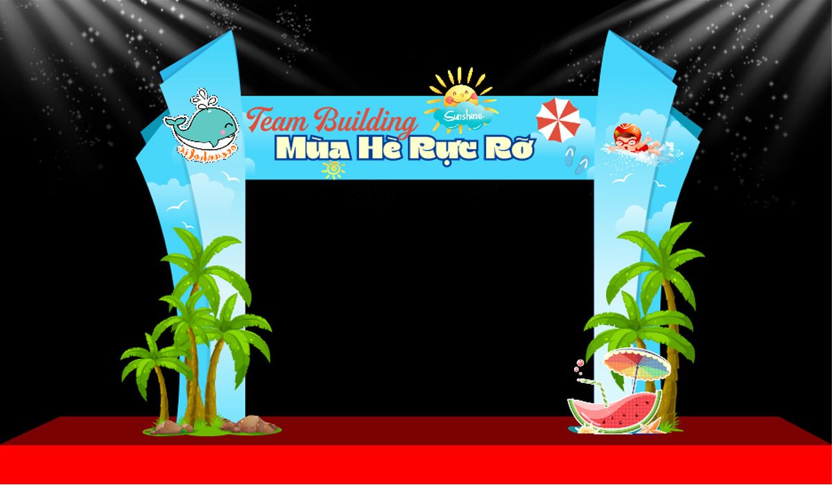 cổng chào hoặc khu vực chụp hình check-in cho các chương trình team building, dã ngoại, nghỉ mát công ty hoặc sự kiện mùa hè ngoài trời. File Corel chất lượng cao, dễ dàng chỉnh sửa nội dung như logo công ty, chủ đề sự kiện, thời gian và địa điểm theo yêu cầu. Đây là lựa chọn lý tưởng giúp các doanh nghiệp tổ chức chương trình gắn kết nhân sự hiệu quả, chuyên nghiệp và ấn tượng. Tải về và sử dụng mẫu sân khấu này để tạo nên điểm nhấn cho mùa hè thêm rực rỡ và đáng nhớ!