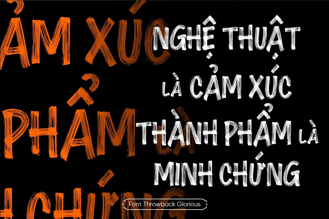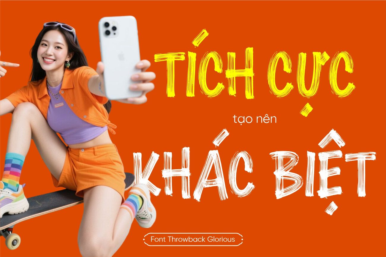 Đánh thức tinh thần tự do và nhịp sống hối hả của đô thị, TH Throwback Glorious Việt hóa là một bản tuyên ngôn đầy năng lượng cho những thiết kế mang phong cách đường phố. Với hiệu ứng cọ vẽ (brush) thô mộc, mỗi nét chữ như được tạo nên từ những nhát sơn xịt đầy ngẫu hứng trên những bức tường graffiti, mang đến một vẻ ngoài vừa bụi bặm, vừa tràn đầy sức sống.