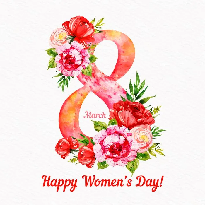 Mẫu thiết kế vector phong cách màu nước (watercolor) đầy tính nghệ thuật. Con số 8 được tô điểm bởi những đóa hoa mẫu đơn rực rỡ và lá xanh mềm mại trên nền giấy mỹ thuật vân nổi. Đây là tài nguyên lý tưởng cho các thiết kế thiệp chúc mừng, bao bì sản phẩm cao cấp hoặc ấn phẩm truyền thông mang hơi hướng thủ công, tinh tế.