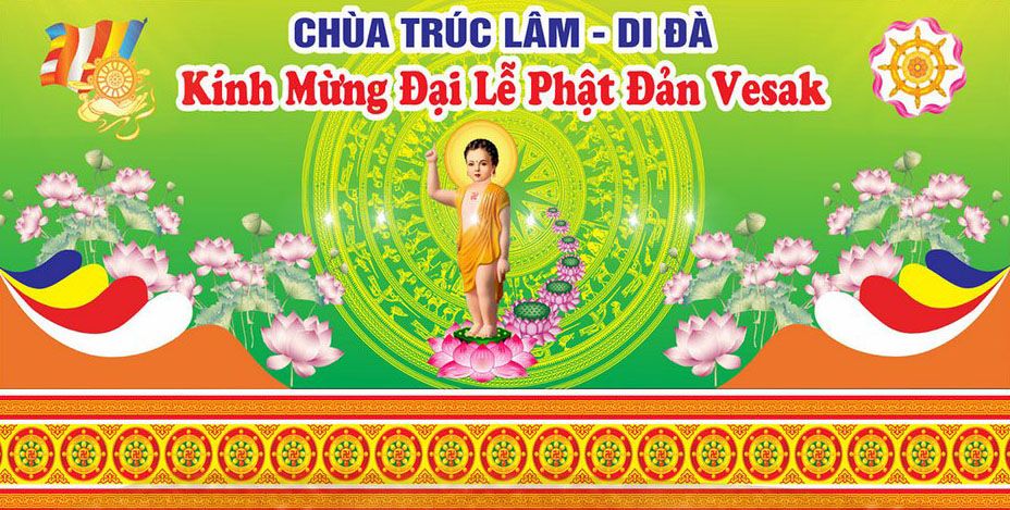 Mẫu băng rôn Phật Đản Vesak vector CDR thiết kế rực rỡ với hình ảnh Đức Phật sơ sinh, hoa sen, cờ Phật giáo và trống đồng truyền thống. Phù hợp treo tại chùa trong mùa Phật Đản. Thiết kế trang nghiêm, dễ chỉnh sửa, thích hợp in khổ lớn cho không gian tâm linh Phật giáo.