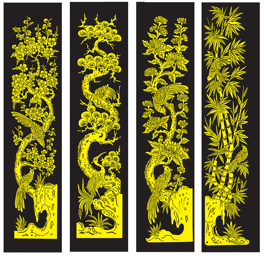 Đa dạng phong cách: Từ cổ điển truyền thống đến hiện đại sáng tạo, giúp bạn linh hoạt sử dụng trong nhiều bối cảnh.Ứng dụng của file Tùng Cúc Trúc Mai vector