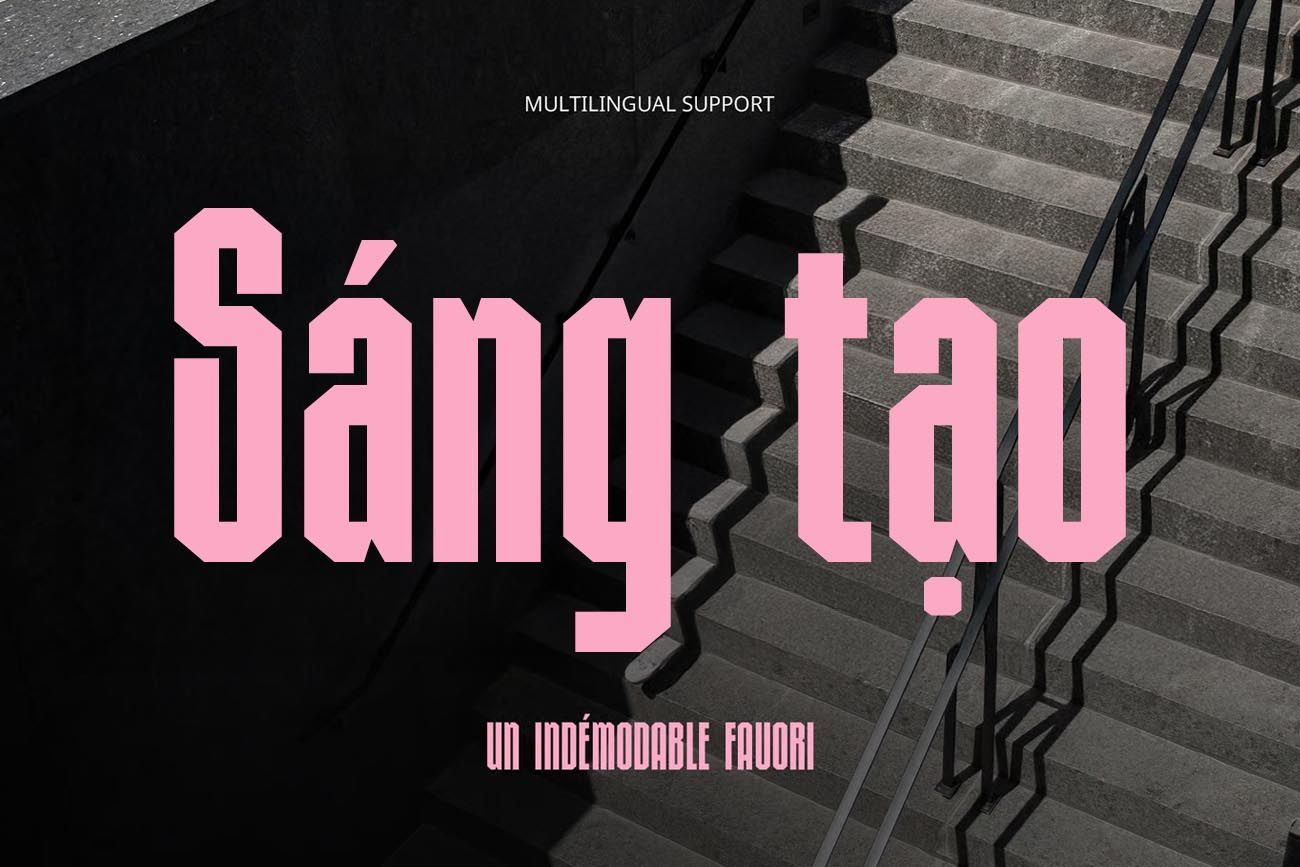 Mô tả: VL Monologue sở hữu những đường nét góc cạnh, cứng cáp, mang đến ấn tượng mạnh mẽ, thể hiện sự quyết đoán và chuyên nghiệp. Thiết kế hiện đại của font phù hợp với nhiều loại hình sáng tạo như logo, poster, banner, đặc biệt là các ấn phẩm về công nghệ, thể thao hay sản phẩm dành cho nam giới.