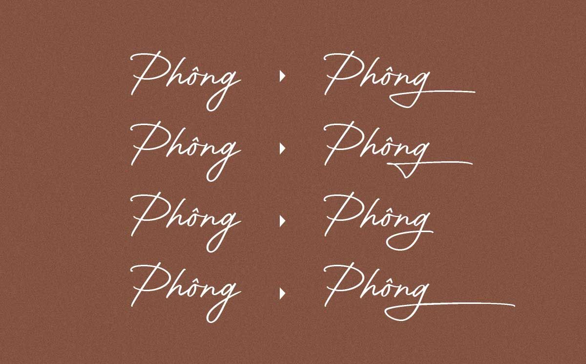 Nhiều ligature & ký tự thay thế: Bộ font có đi kèm các biến thể chữ cái (alternate characters) và ligatures để người dùng dễ dàng tạo nên một thiết kế không lặp lại, giàu cá tính.